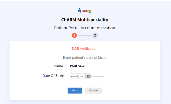 2. Enter your Date of Birth, then NEXT